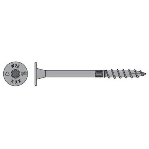 These screws are 5" length (1 9/16" thread length), 0.22" diameter, T40 6-Lobe star drive. E-Coat. The Strong-Drive® SDW EWP-Ply screw is a high-strength structural wood screw specifically designed for fastening multi-ply wood members, such as engineered-wood products and solid-sawn lumber. The SDW EWP-Ply installs easily with no pre-drilling and is available in optimized lengths for fastening 1 3/4" engineered lumber, such as structural composite lumber (SCL). The large, flush head eases the handling of assembled girders and simplifies the installation of finishes or structural connectors. Each box contains 200 screws.