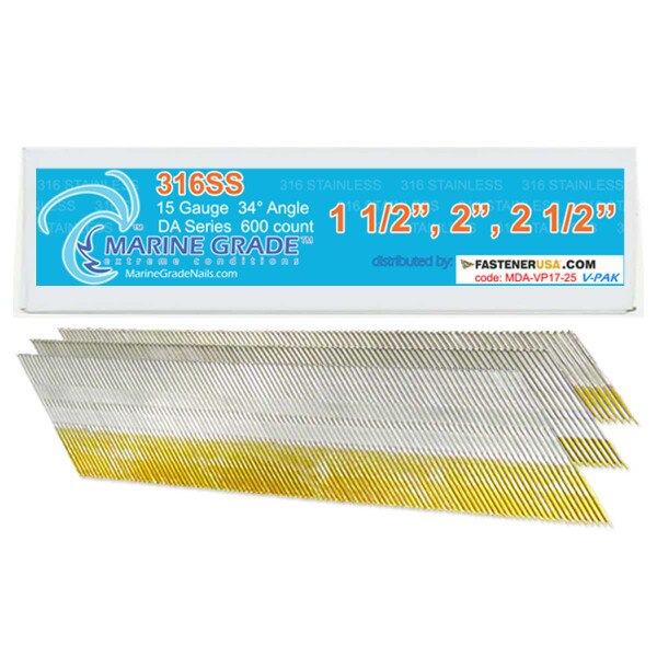 1-1/2" to 2-1/2" DA ANGLE FINISH NAILS 15GA 316SS 600ct | MDA-VP17-25