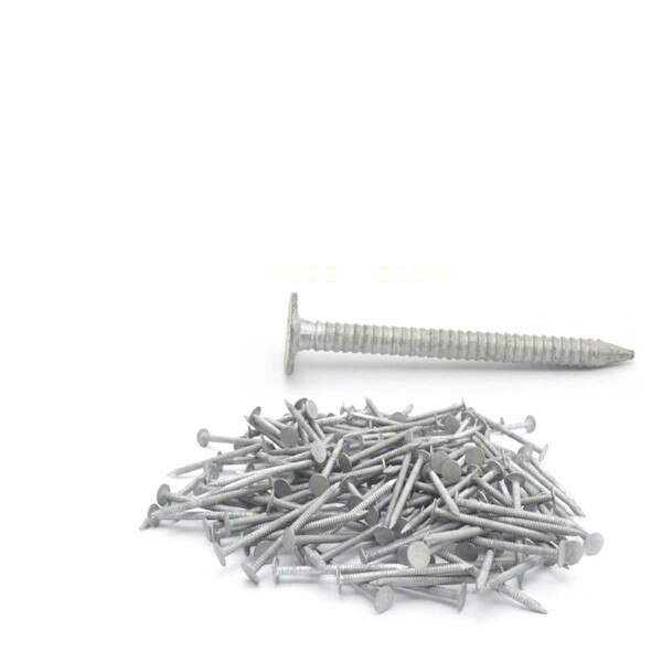 Our ASTM A153-D True Hot Dip Nails are HOT DIPPED. They meet and/or exceed the United States standard for Hot Dip Zinc Mass Coating of ASTM A153 class D Fasteners. These 1 1/2" nails are .120" (11 Gauge) RING SHANK with a large 3/8" diameter flat head and regular diamond point. Ring shank nails, also known as annular thread, offer superior holding power in wood and plywood roof decks. Roofing Nails are commonly used for Asphalt Shingles, Slate and Clay Tile. For slate roofs choose correct nail length by adding one inch to twice the thickness of slates. Each box contains 5 pounds. Approximately 185 nails per pound.