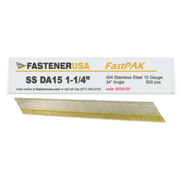 1-1/4" DA15 ANGLE FINISH NAILS 15GA 304SS 500ct | SSDA15F