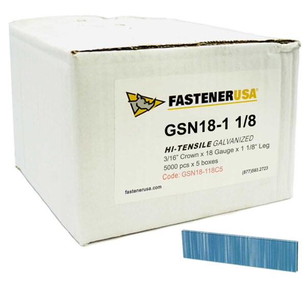 1-1/8" LEG x 3/16" CROWN 18GA GALV GSN18 STAPLES 25,000ct | GSN18-118C5