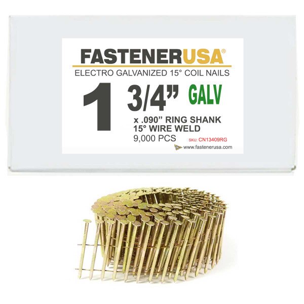 1 3/4" x .090 RING GALV COIL NAILS 15-DEG WIRE 9,000ct | CN134090RG