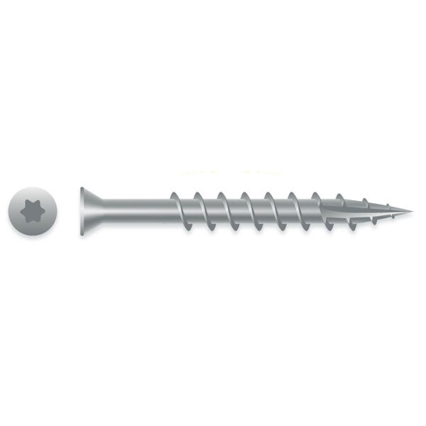 - Exterior wood screw for attaching trim and rails to decks or fences.
