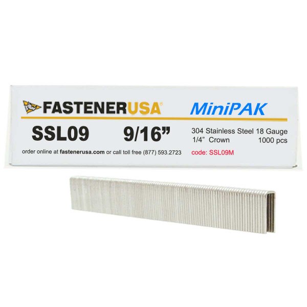 9/16" LEG x 1/4" CROWN 18GA 304SS L09 STAPLES 1,000ct | SSL09